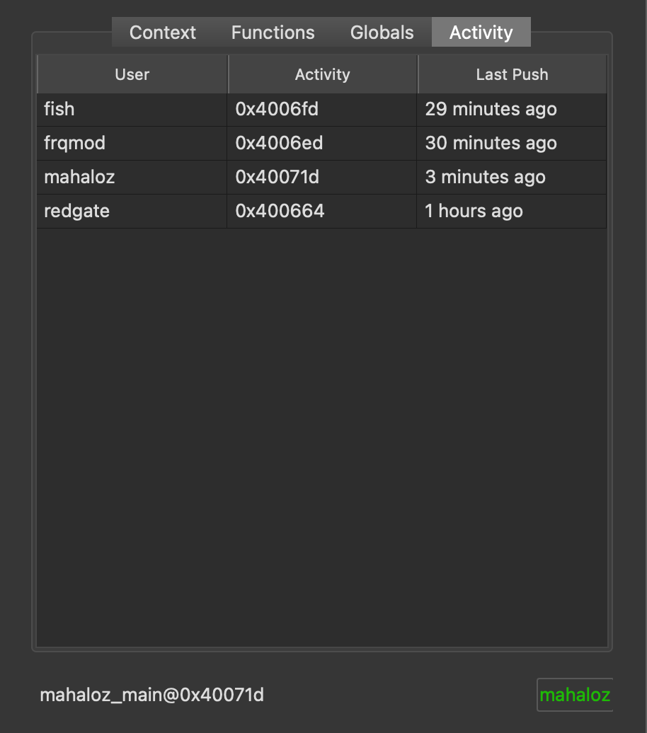 If you are on angr-management or Ghidra this may be hidden. Instead, you should see a panel open with your username on the bottom right. If on Binary Ninja, open the log panel and make sure your log scope includes the Plugin Manager.